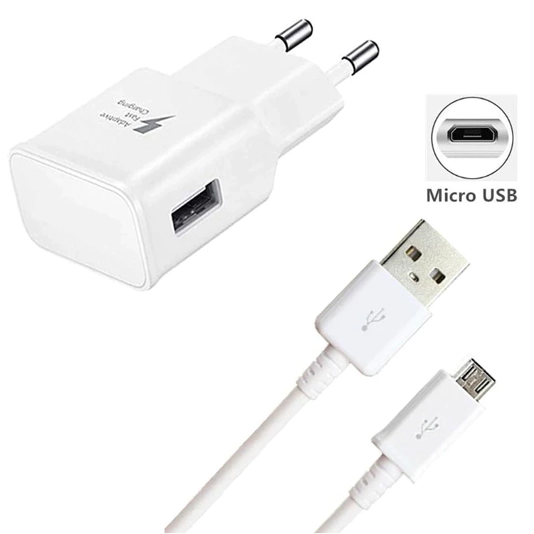 شاحن سريع 15 وات من سامسونج، بمنفذ Micro USB 3.0 15 وات وكابل بيانات لموبايل جالاكسي s6 / نوت 4 – ابيض